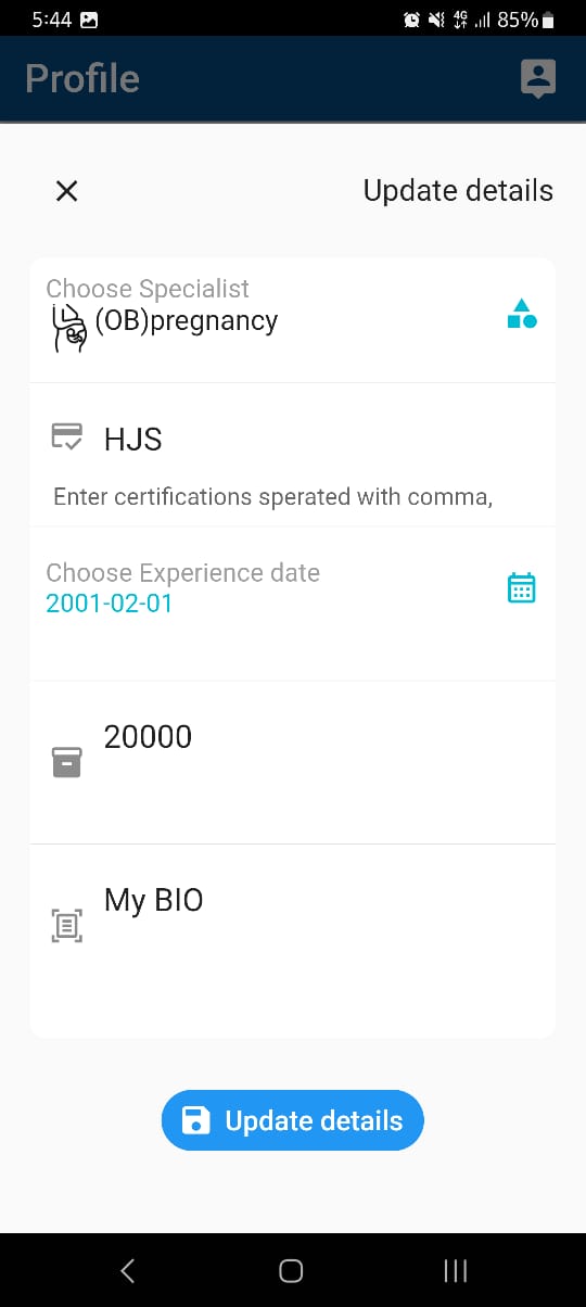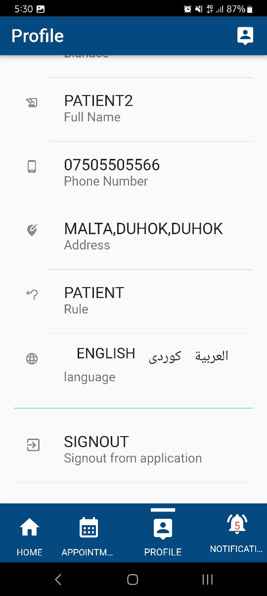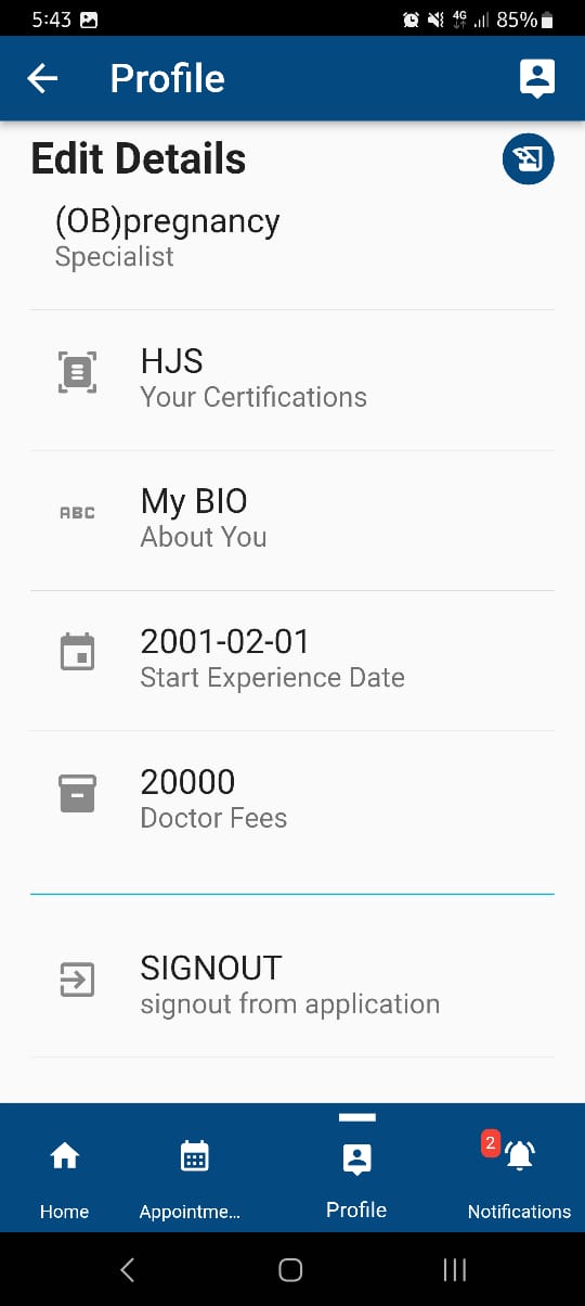 - Can update some information of the profile such as image,name,email,date of birth and reset password.